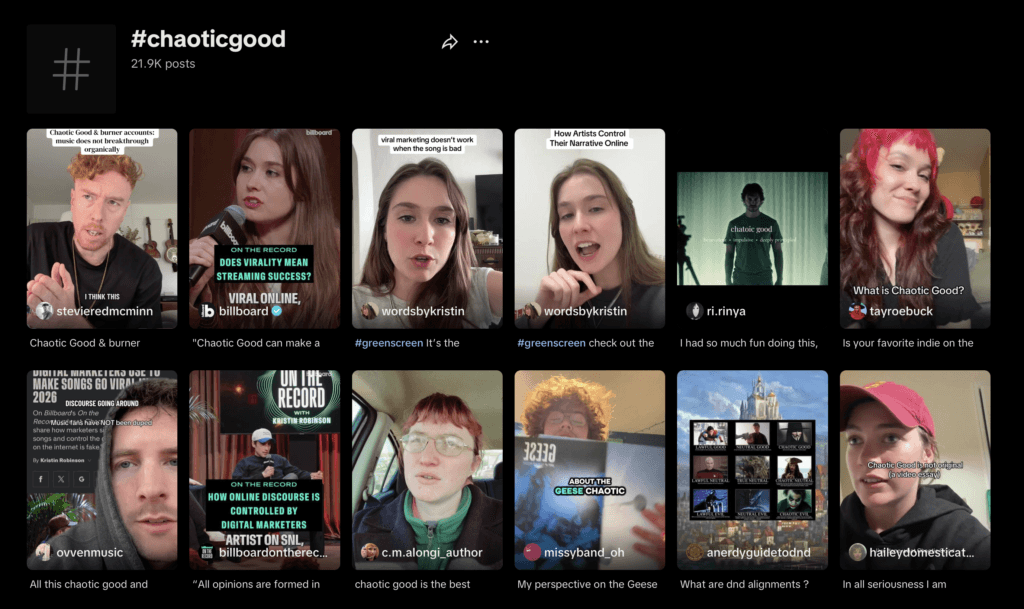 Chaotic Good gestiona una red de empleados y contratistas que publican como si fueran fans reales. Comparten ediciones, clips de actuaciones y publicaciones emotivas, generando suficiente actividad como para engañar al algoritmo de TikTok y hacerle creer que una canción es tendencia. “Nuestra oficina está repleta de iPhones”, declaró uno de los cofundadores a Billboard.